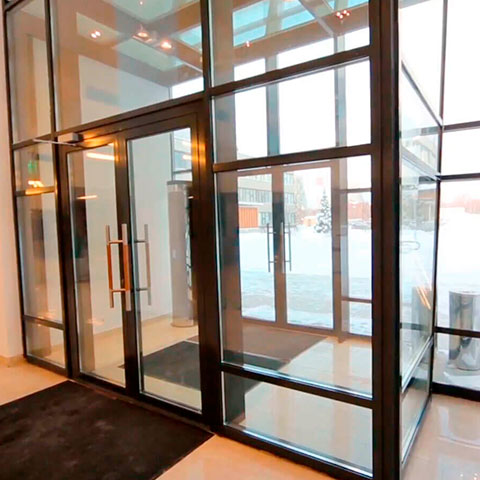 Раздвижные стеклянные двери - максимальная экономия пространства в помещении и увеличение пропускной способности при большом потоке людей.