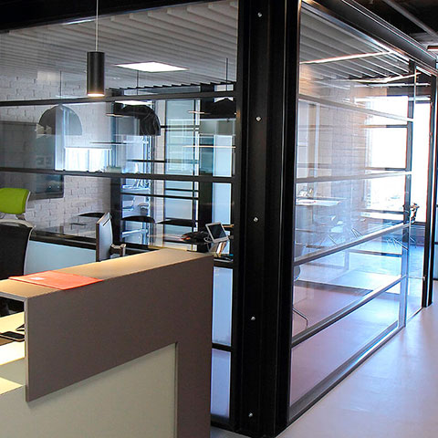 Самая важная функция перегородок из стекла — разграничение пространства с целью создания обособленных зон: для работы, отдыха, складирования товара.